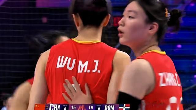 决胜局,比分再次从1平打到6平。之后,吴梦洁四号位强攻得分,张籽萱发球直接得分,中国队9-7领先,多米尼加队请求暂停。暂停回来,龚翔宇老将有经验立功了,连续进攻得手,多米尼加队一传垫飞,中国队12-8扩大领先优势。